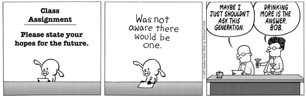 This is the third, and for the moment, final post in my series on how we are failing to prepare the next generation for a fulfilling life. The first two posts focused on broad, but tangible issues, the economy facing young people and the confusion of post-secondary education. Today’s post is about something more diffuse but arguably more important—failing to create a sense of a robust future in young people.