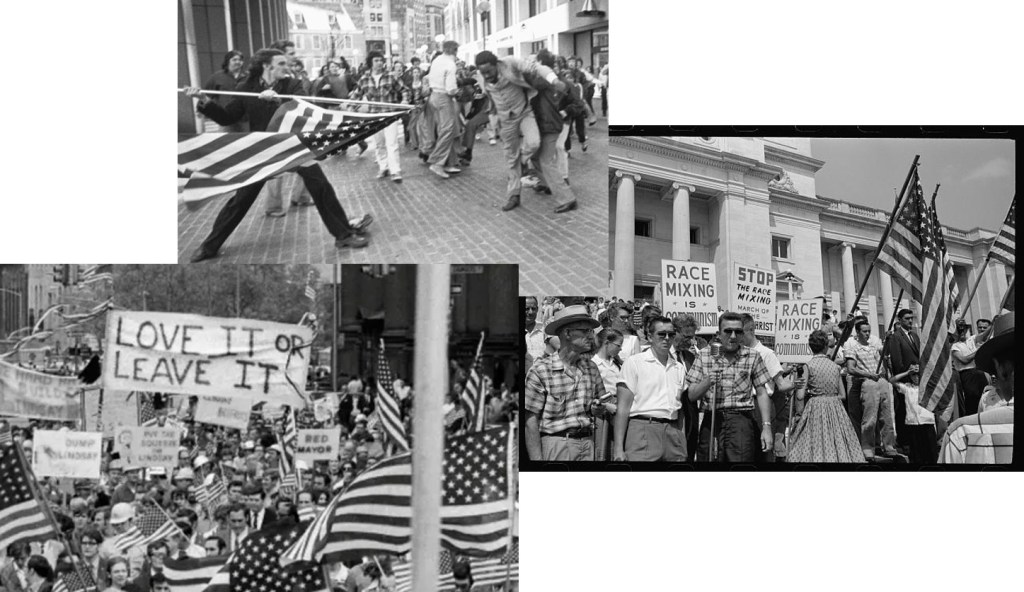 Naturally all sides claim they are promoting the “true” American values. In the case of the flag, the forces of a more inclusive version of the American principles were willing to let those with narrower interpretations own the flag–in large part because it made it so easy to underline the contradictions between the larger principles and those who hid behind the flag.