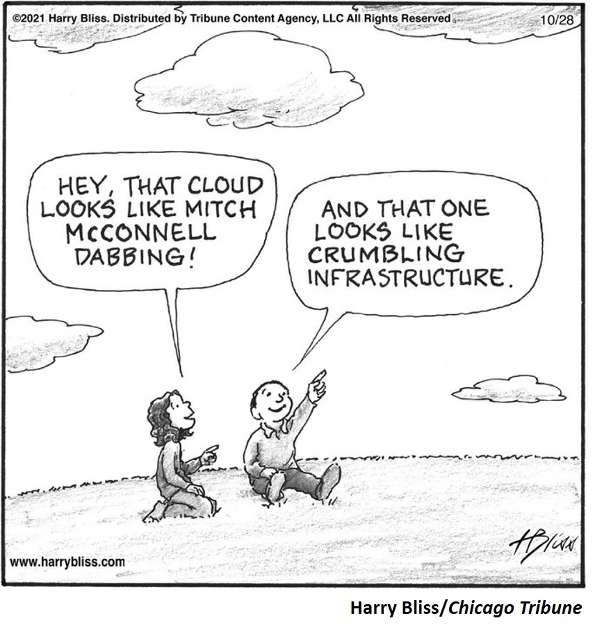 Mitch McConnell’s comment that the elements of the Build Back Better proposal are not things Americans are asking for is simply absurd. Family leave, environmental amelioration, infrastructure….how can one say with a straight face these are not things the American people want? Sure, there are differences over details. But that’s what the legislative process should be about—and is what the Democratic Party is doing. Of necessity, by itself.