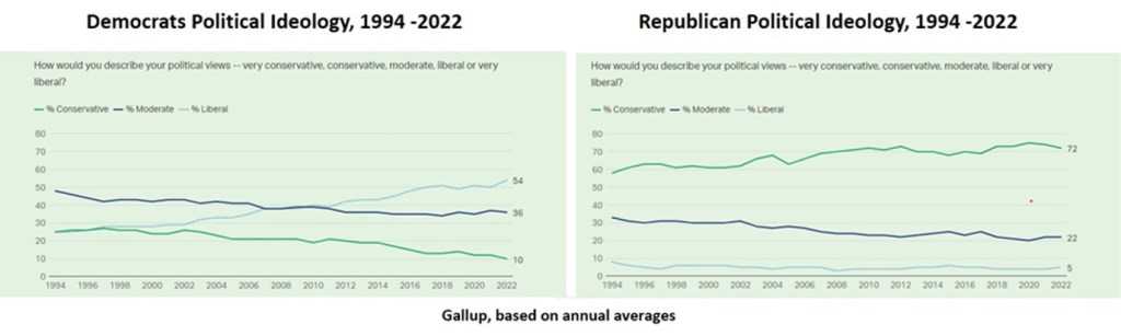 I think this evidence is sufficient that we can’t flick it away as more MAGA-foolishness. There are voters who broadly agree with most policies of the Democrats, but who just feel unsympathetic to what they see as “extreme” viewpoints. Some of this, of course, is more a reaction to the way Republicans have exaggerated and twisted what was in fact said. But, either way, it’s a real problem for Democrats.