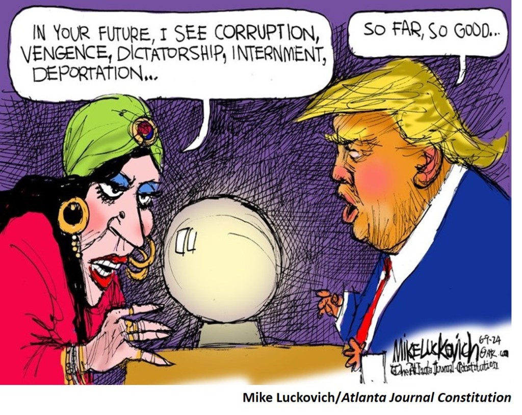 I don’t know, but I don’t see how it’s good. Whether or not the voters understand, if Trump wins, our democracy based on some idea of the equality of humans is on life support. While here is no coherent Trumplican ideology, Donald Trump has made it clear he wants to govern on an agenda of vengeance, grievance, and the insistence on loyalty above all. He, and some of his cronies, are more than willing to cozy up to some of the extremist Christian nationalists.