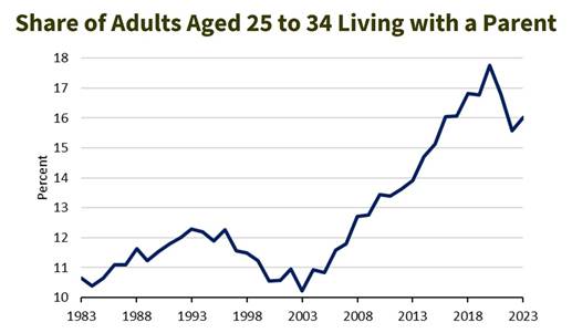 Again, while this impacts everyone in the bottom 80% of the income distribution, the impacts on young are magnified. They have no resources on which to fall back. They are seeking for the first time many of the things all adults want to have–their own car, have their own place, be able to imagine starting a family.