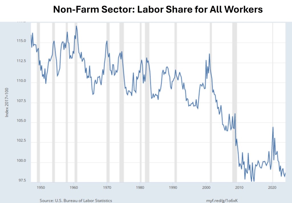 The core problem of the American economy is that the benefits of the economy are going disproportionately to capital rather than labor. We’ve all seen the graphs.