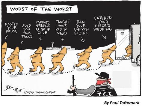 There is also the economics of the matter. In general, it is pretty well beyond arguing that under current conditions, immigrants are a net contributor to the nation’s economy. Conversely, the kind of mass deportation that the Trumplicans have been implementing is a drag on the overall economy. The problem, however, is that what is true on average is not necessarily true in every particular circumstance. When a community gets a major influx of immigrants, it will experience disproportionate costs addressing the situation. The evidence also suggests that immigration by relatively low skill workers can adversely affect low skill native born workers. (But, as noted above, the very adverse effect on native-born workers, typically lower wages, is seen as a good thing by employers who may be more than willing to turn a blind eye.)